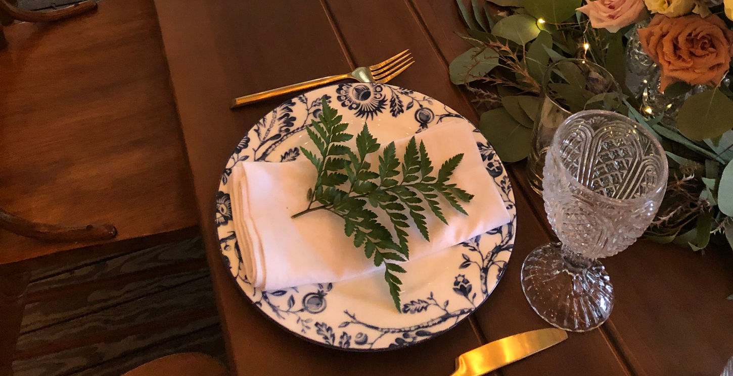 A restored 1930s log cabin beside the chapel, with a covered porch perfect for dinners, portraits, or getting ready. Rent the cabin for full access to all the comforts of home.